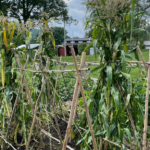 To demonstrate the process of harvesting and storing corn plants for livestock feed, the corn stalks in the Heirloom Kitchen Garden were harvested and stacked on the now-empty bean trellises for drying in “fodder stacks” or “shuck stacks.” Now that the garden harvest is complete and our first year of the Heirloom Kitchen Garden is done, it is time to reflect on our work for the year.